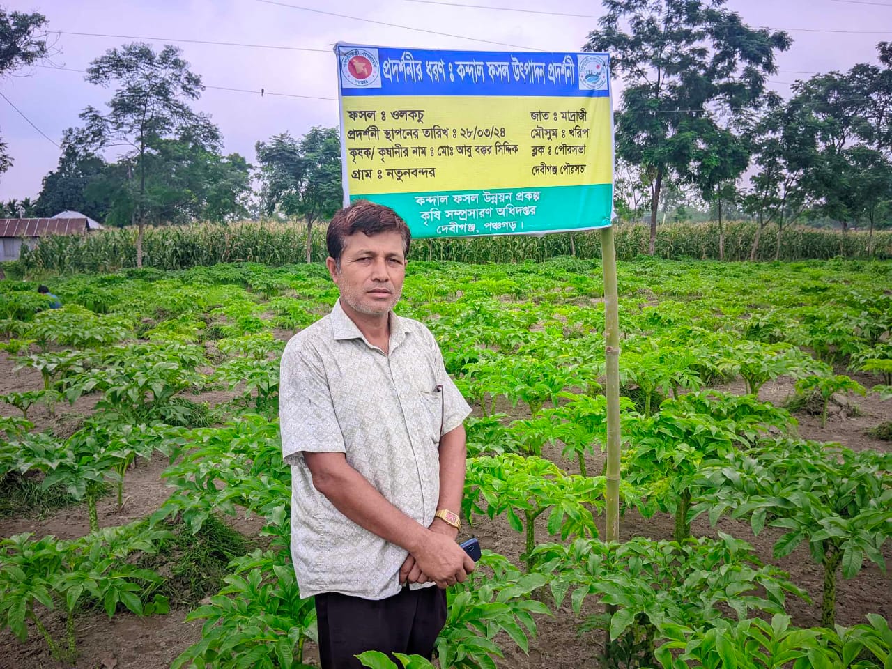 আওতায় দেবীগঞ্জ পৌর সদরের ৯ নং ওয়ার্ডের নতুন বন্দর গ্রামের কৃষক আবু বক্কর সিদ্দিক সহ একাধিক কৃষক কে প্রশিক্ষনের মাধ্যমে ওলকচু চাষে উদ্বুদ্ধ করা হয়। প্রথমবারেই কম খরচে স্বল্প সময়ে ভালো ফলন দেখা যাচ্ছে। এতে লাভের আশা করছেন কৃষক। পতিত জমিতে এমন ফলন দেখে আরো আগ্রহী হচ্ছে অন্য এলাকার কৃষকেরাও।