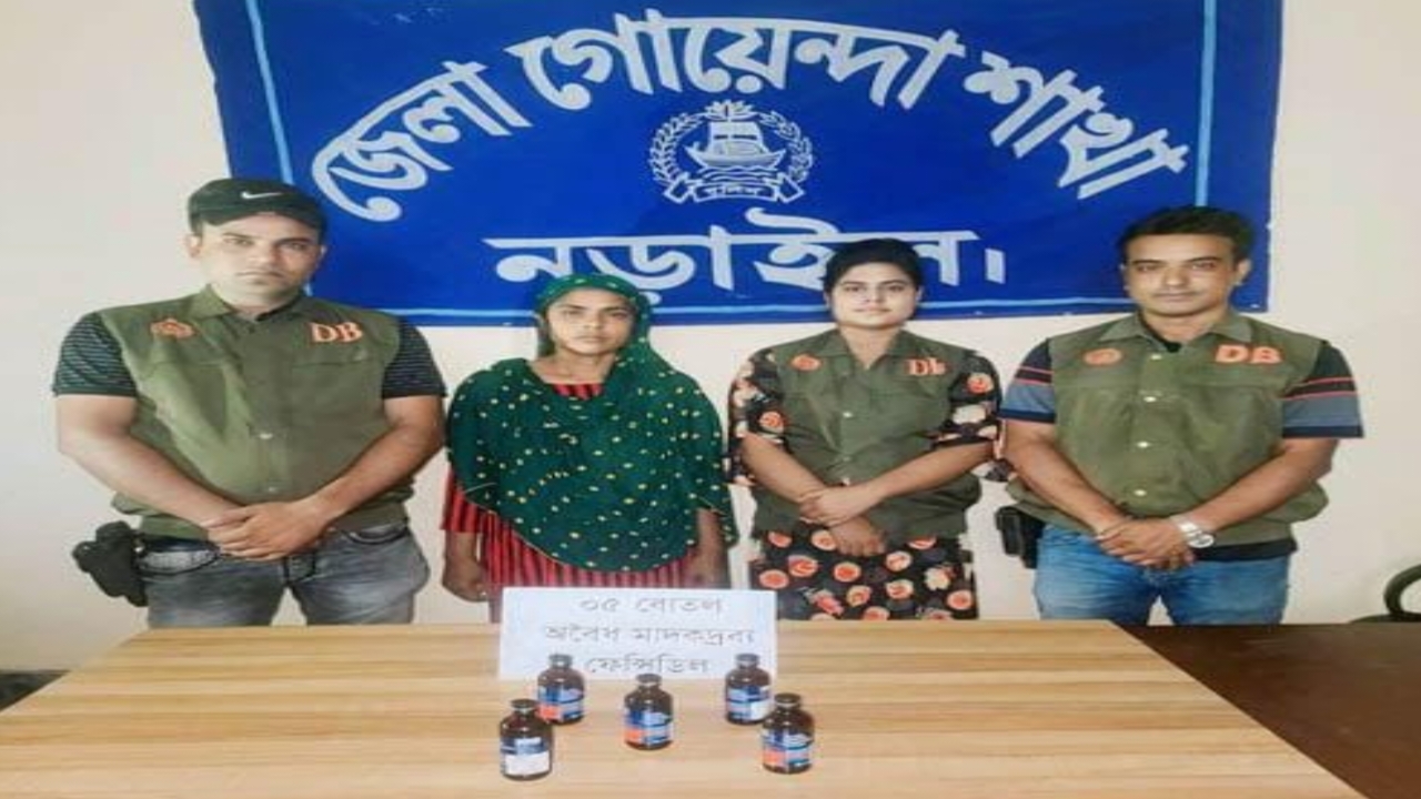 পুলিশ সুত্রে জানা জানা যায়,গোপন সংবাদের ভিত্তিতে সোমবার (৮জুলাই)রাত সাড়ে ৯টার দিকে নড়াইল গোয়েন্দা শাখার (ডিবি) পুলিশের এসআই মোঃ সাইফুল ইসলাম সঙ্গীয় ফোর্স নিয়ে আউড়িয়া ইউপির রামচন্দ্রপুর গ্রামের কবির শেখের বাড়ির পাশে অভিযান চালিয়ে রাস্তার উপর দাড়িয়ে থাকা আকলিমা পারভনি কে আটক করে এবং দেহ তল্লাশী করে পাঁচ বোতল ফেন্সিডিল জব্দ করা হয়।