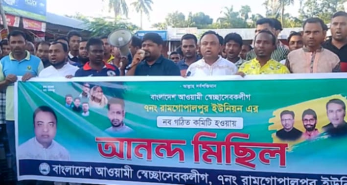 ময়মনসিংহের গৌরীপুর উপজেলার ৭নং রামগোপালপুর ইউনিয়নের নব-গঠিত আওয়ামী স্বেচ্ছাসেবক লীগের কমিটি অনুমোদন দেওয়ায় আনন্দ মিছিল অনুষ্ঠিত হয়েছে।