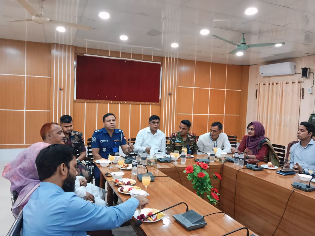 চাঁপাইনবাবগঞ্জের গোমস্তাপুরে দেশে চলমান পরিস্থিতিতে আইন শৃঙ্খলা স্বাভাবিক রাখতে জনপ্রতিনিধি ও সরকারী কর্মকর্তাদের সাথে মতবিনিময় সভা করেছেন জেলা প্রশাসক একে এম গালিভ খাঁন। এসময় উপস্থিত ছিলেন জেলা পুলিশ সুপার মোঃ ছাইদুল হাসান, জেলার সেনাবাহিনীর দায়িত্বপ্রাপ্ত কর্মকর্তা লে: কর্নেল শান্ত রাজ। ৫৯, বিজিবির মেজর ইমরুল কায়েশ,উপজেলা পরিষদের চেয়ারম্যান মোঃ আশরাফ হোসেন আলিম, উপজেলা নির্বাহী অফিসার নিশাত আনজুম অনন্যা, রহনপুর পৌর মেয়র মতিউর রহমান খাঁনসহ সরকারি কর্মকর্তা ও জনপ্রতিনিধিরা।