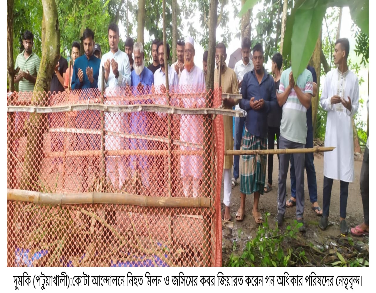 জেলা প্রতিনিধি পটুয়াখালীঃ পটুয়াখালীর দুমকিতে বৈষম্য বিরোধী ছাত্র আন্দোলনে নিহতদের কবর জিয়ারত শেষে আর্থিক সহায়তা প্রদান করেন গন অধিকার উচ্চতর পরিষদের সদস্য কৃষিবিদ সহিদুল ইসলাম ফাহিম।