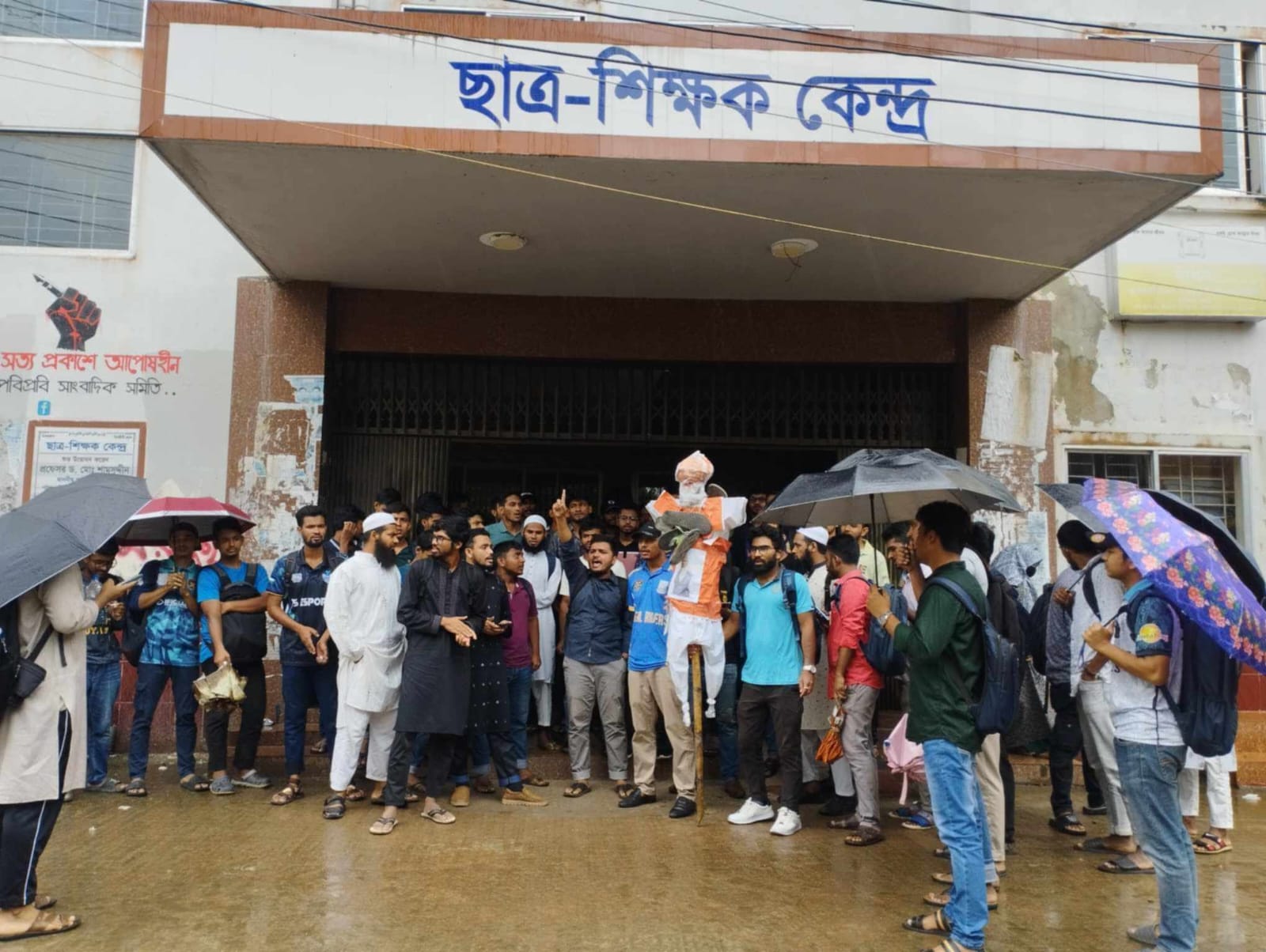 বৃহস্পতিবার (২২ আগস্ট) দুপুর ১২টা ৩০ মিনিটে বিশ্ববিদ্যালয়ের ছাত্র-শিক্ষক মিলনায়তন(টিএসসি) প্রাঙ্গনে উক্ত কর্মসূচি অনুষ্ঠিত হয়। সকাল থেকেই আবহাওয়া প্রতিকূল থাকা সত্ত্বেও বৃষ্টি উপেক্ষা করে টিএসসি চত্বরে জড়ো হতে থাকে শিক্ষার্থীরা। পরে কর্মসূচির অংশ হিসেবে নরেন্দ্র মোদির কুশপুত্তলিকায় জুতার মালা ঝুলিয়ে শিক্ষার্থীরা বিক্ষোভ মিছিল করেন। মিছিলটি বিশ্ববিদ্যালয়ের প্রধান প্রধান সড়ক প্রদক্ষিণ করে টিএসসি চত্বরে এসে শেষ হয়।মিছিল পরবর্তী শিক্ষার্থীরা নরেন্দ্র মোদির কুশপুত্তলিকা দাহ করেন। এসময় শতাধিক শিক্ষার্থীরা"পেতে চাইলে মুক্তি, ছাড়ো ভারত ভক্তি, বন্যায় মানুষ মরলে,সেভেন সিস্টার্স থাকবে না রে, দিল্লী না ঢাকা, ঢাকা-ঢাকা, ভারতীয় আগ্রাসন,ভেঙে দাও গুড়িয়ে দাও ইত্যাদি স্লোগানে মুখরিত হয় বিশ্ববিদ্যালয় প্রাঙ্গণ।