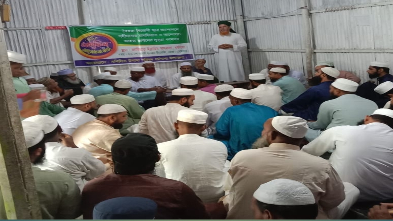 সুনামগঞ্জের ধর্মপাশা উপজেলার সদর ইউনিয়নের উত্তর পাড়া গ্রামে জামিয়াতু ইব্রাহিম মাদ্রাসায় ২৬শে আগস্ট সোমবার দোয়া মাহফিল ও আলোচনা সভা অনুষ্ঠিত হয়েছে। ধর্মপাশা উপজেলার, সম্মিলিত উলামা পরিষদের পক্ষ থেকে বৈষম্য বিরোধী ছাত্র জনতার আন্দোলনে শহীদদের মাগফিরাত ও আহত ভাইদের সুস্থতা কামনায় সকাল ১০ টার দিকে এ অনুষ্ঠানের আয়োজন করা হয়। উক্ত সংগঠনের সভাপতি মাওলানা আমিনুল ইসলামের সভাপতিত্বে, মাওলানা মুখলেছুর রহমান ও হাফেজ মাহমুদুল হাসান মজুমদারের সঞ্চালনায়, বক্তব্য রাখেন, মুফতি হাবিবুর রহমান কাশেমি, মাওলানা মোজাম্মেল হক তালুকদার, মাওলানা ইসমাঈল হোসেন সহ আরো অনেকেই। সভা শেষে, বাংলাদেশের বিভিন্ন জেলায় অনাকাঙ্ক্ষিত বন্যায় ক্ষতিগ্রস্ত মানুষের পাশে দাঁড়াতে নগদ টাকা উত্তোলন করেন উপস্থিত সকলের কাছ থেকে।দেশ ও দেশের মানুষের জন্য ও বৈষম্য বিরোধী ছাত্র জনতা আন্দোলনে শহীদ ও আহতদের জন্য দোয়া কামনায় মোনাজাত করা হয়।