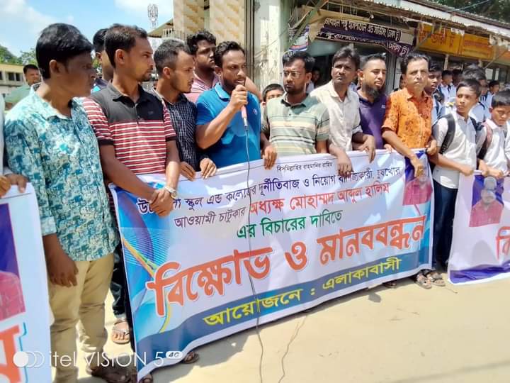সোমবার (২ সেপ্টেম্বর) দুপুরে বিষয়টি নিয়ে বিদ্যালয়ের সামনে বিক্ষোভ ও মানববন্ধন করেছে ছাত্র-ছাত্রীসহ অভিভাবকগণ।