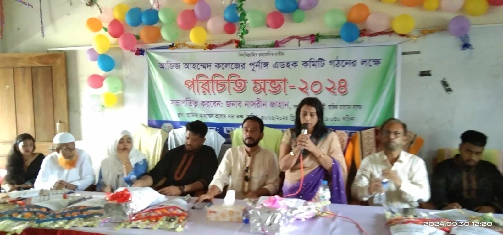 জাহিদুল ইসলাম, জেলা প্রতিনিধি পটুয়াখালীঃ দুমকি আজিজ আহম্মেদ কলেজের নব গঠিত এডহক কমিটির পরিচিতি সভা ও পূর্ণাংঙ্গ এডহক কমিটি গঠনের লক্ষে প্রথম সভা অনুষ্ঠিত হয়েছে। সোমবার সকাল ১০টায় আজিজ আহম্মেদ কলেজ অডিটরিয়ামে কলেজের নব গঠিত এডহক কমিটির সভাপতি নাসরীন জাহান এর সভাপতিত্বে এ পরিচিতি সভা অনুষ্ঠিত হয়। অনুষ্ঠানে বিশেষ অতিথি হিসেবে উপস্থিত ছিলেন, অত্র কলেজের সাবেক সভাপতি ও জনতা ব্যাংকের অবসরপ্রাপ্ত জিএম মোঃ মান্নান হাওলাদার, উপজেলা বিএনপির সাবেক সহ সভাপতি ও প্রতিষ্ঠাতা পরিবারের অন্যতম সদস্য মোঃ জসিম উদ্দিন হাওলাদার, এডহক কমিটির বিদ্যােৎসাহী সদস্য মোঃ আশিকুর রহমান, তৌকির আহম্মেদ শাবারসহ প্রতিষ্ঠাতা পরিবারের অনান্য সদস্যবৃন্দ, উপজেলা বিএনপির সহ সাংগঠনিক সম্পাদক মোঃ ইব্রাহীম, উপজেলা যুবদলের সিনিয়র যুগ্ম আহবায়ক মোঃ জাকির হোসেন হাওলাদার, যুগ্ম আহবায়ক মোঃ মিজানুর রহমান, মোঃ সাইদুর রহমান খান, মাইনুল হাসান, সৈয়দ সাখাওয়াত হোসেন, ইউপি সদস্য মিজানুর রহমান প্রমূখ। অনুষ্ঠানে বক্তারা আজিজ আহম্মেদ কলেজসহ তার প্রতিষ্ঠিত আরো সাতটি প্রতিষ্ঠান ও প্রতিষ্ঠাতা সম্পর্কে বিভিন্ন স্মৃতিচারণ করেন এবং প্রতিষ্ঠাতাসহ যারা মৃত্যুবরণ করেছেন এবং ছাত্র জনতার আন্দোলনে যারা শহীদ হয়েছেন তাদের আত্মার মাগফিরাত কামনা করে দোয়া ও মোনাজাত অনুষ্ঠিত হয়। এ সময় কলেজের শিক্ষক, শিক্ষার্থী, স্থানীয় গন্যমান্য ব্যক্তিবর্গ ও সুশীল সমাজের নের্তৃবৃন্দ উপস্থিত ছিলেন