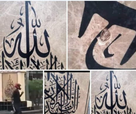 ভিডিওতে দেখা যায়, মুখে কালো কালি মেখে হেলমেট পরিহিত অজ্ঞাত এক যুবক চাইনিজ কুড়াল দিয়ে এ ইসলামিক স্থাপনা ভাঙচুর করার চেস্টা করে।