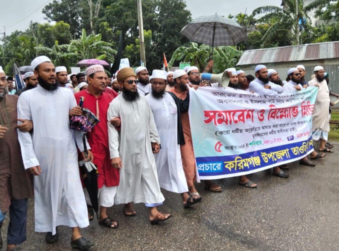 বত্তব্য রাখেন,করিমগঞ্জ উপজেলা জামায়াতে ইসলামীর সদস্য মুস্তাকিম হাসান,ইসলামী আন্দোলনের সভাপতি রমজান আলী, খেলাফত মজলিশের সভাপতি মামুনুর রশিদ প্রমুখ।