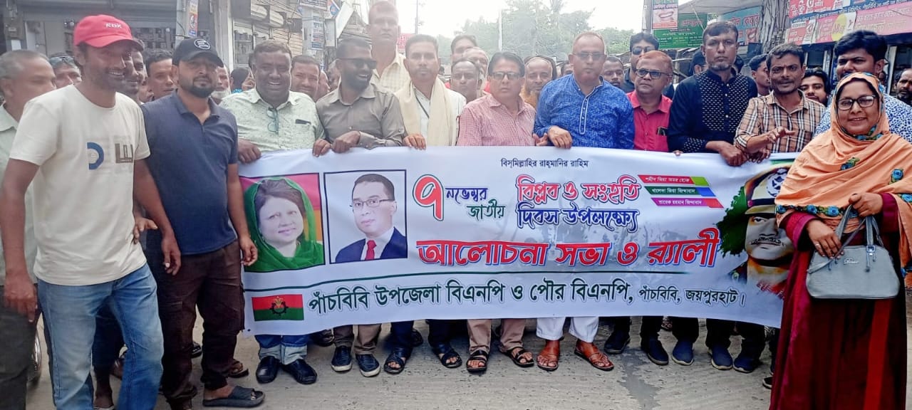 জয়পুরহাটের পাঁচবিবিতে জাতীয় বিপ্লব ও সংহতি দিবস উপলক্ষ্যে আলোচনা সভা ও র্যালী অনুষ্ঠিত হয়েছে।