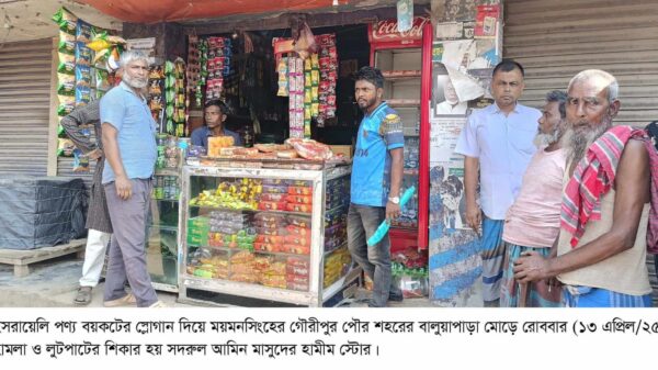ইসরায়েলি পণ্য বর্জনের স্লোগান দিয়ে গৌরীপুরে দোকানে দোকানে লুট! গাড়ি ভাংচুর