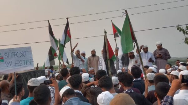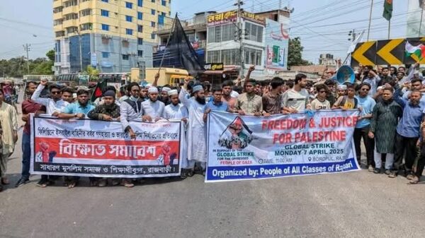রাজবাড়ীতে ফিলিস্তিনের পাশে একাত্মতা প্রকাশে বিক্ষোভ ও সমাবেশ
