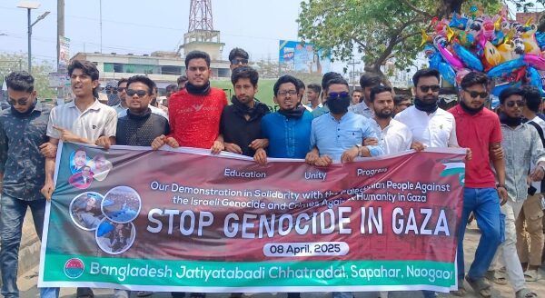 গা’জা’র গনহত্যা ইসরায়েলি পন্য বয়কটের দাবিতে বিক্ষোভ মিছিল ও সমাবেশ।