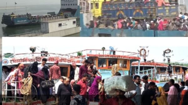 ঈদের ৪র্থ দিন দৌলতদিয়ার ফেরি লঞ্চ পার হচ্ছে হাজারো মানুষ