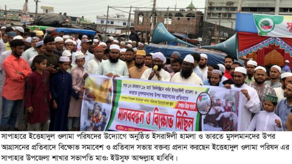 ফিলিস্তিনে ইসরাঈলী হামলা ও ভারতে মুসলমানদের উপর আগ্রাসনের প্রতিবাদ সাপাহারে বিক্ষোভ