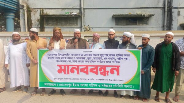 হোসেনপুরে ওরসের নামে অসামাজিক কার্যকলাপ বন্ধের দাবিতে মানববন্ধন