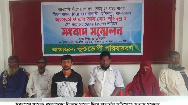 ঈশ্বরগঞ্জে সাবেক এসআইয়ের বিরুদ্ধে মিথ্যা মামলা দিয়ে হয়রানীর অভিযোগে সংবাদ সম্মেলন
