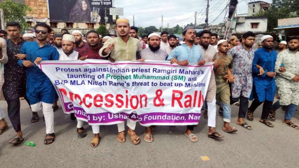 ভারতে মহানবী সাঃ কে কটূক্তির প্রতিবাদে নড়াইলে বিক্ষোভ মিছিল