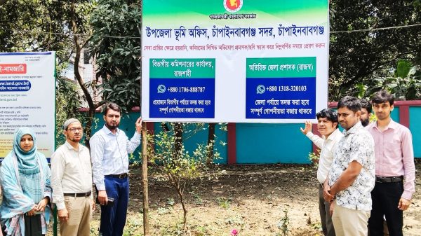 চাঁপাইনবাবগঞ্জে ভূমি অফিসে সেবা সহজ করতে অভিযোগ সাইনবোর্ড উদ্বোধন