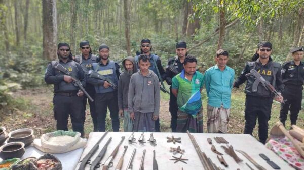 ইদগড়ের গহীন পাহাড়ে র্যবের অভিযানে বিপুল অস্ত্র, গোলাবারুদ সহ আটক ৪।