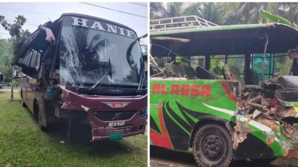 নড়াইলে মহাসড়কে বাসের মুখোমুখি সংঘর্ষ আহত তিন