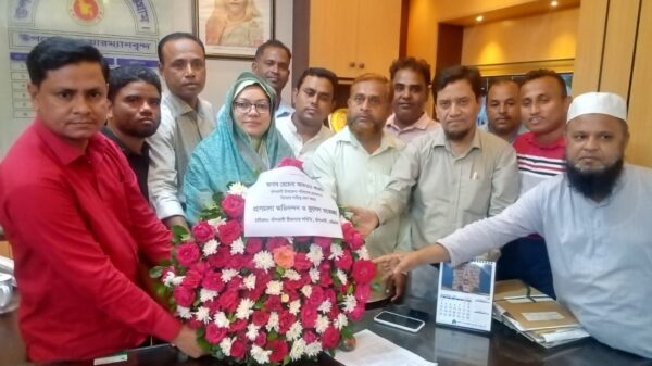 বাঁশখালী ঠিকাদার সমিতির পক্ষে মোঃ ইব্রাহিম আল হোসাইনীর বাঁশখালীর প্রথম উপজেলা চেয়ারম্যান জনাবা রেহেনা আক্তার কাজমীকে ফুলেল শুভেচ্ছা।