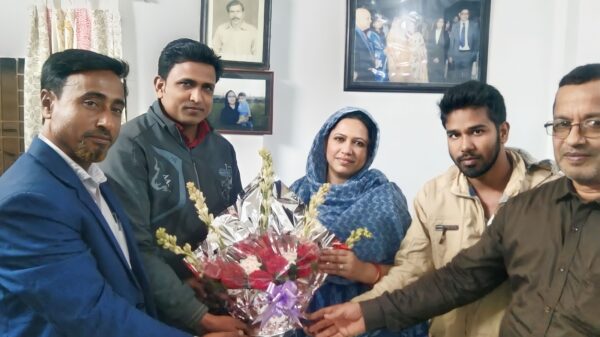 আ.লীগের দলীয় প্রার্থী নিলুফার আঞ্জুমের সঙ্গে ফুলেল শুভেচ্ছা