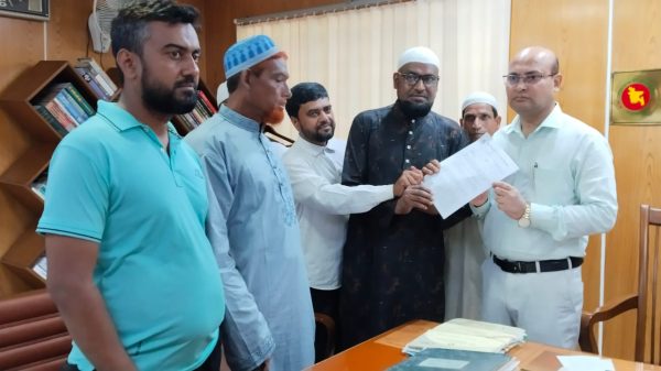 স্বতন্ত্র ইবতেদায়ী মাদ্রাসা জাতীয়করণের দাবিতে জেলা প্রশাসককে স্মারকলিপি প্রদান