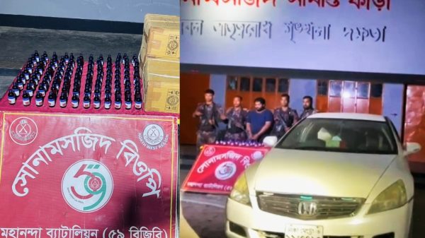 সোনামসজিদ সীমান্তে ৫৯ বিজিবি’র পৃথক ২টি অভিযানে মাদকসহ প্রাইভেট কার জব্দ, আটক ১