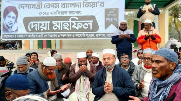 বাগেরহাটের রামপালে দেশনেত্রী বেগম খালেদা জিয়ার রূহের মাগফিরাত কামনায় দোয়া মাহফিল।