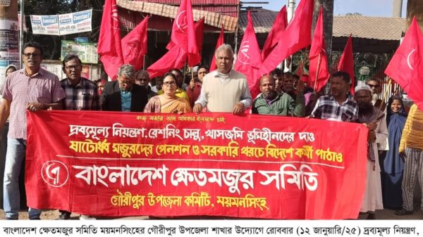 গৌরীপুরে দ্রব্যমূল্য নিয়ন্ত্রণ, রেশনিং চালু ও ভূমিহীনদের খাসজমি প্রদানের দাবিতে বিক্ষোভ মিছিল