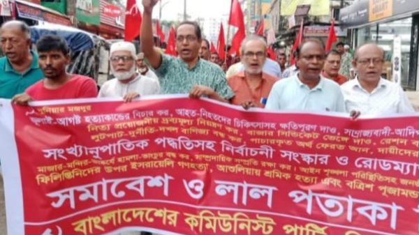 কিশোরগঞ্জে কমিউনিস্ট পার্টির সমাবেশ ও লাল পতাকা মিছিল অনুষ্ঠিত।