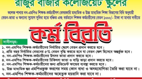 নেত্রকোনার রাজুর বাজার কলেজিয়েট স্কুলের শিক্ষাদের বিভিন্ন দাবিতে কর্ম বিরতি ও জেলা প্রশাসক বরাবর স্মারকলিপি প্রদান
