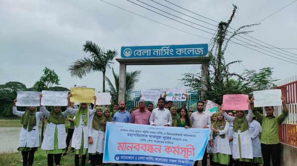 নার্সদের নিয়ে কটুক্তির প্রতিবাদে ত্রিশালে মানববন্ধন
