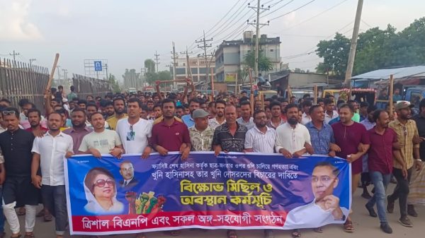 ত্রিশালে বিএনপির সহযোগী অঙ্গ সংগঠনের নেতাকর্মীদের বিক্ষোভ মিছিল