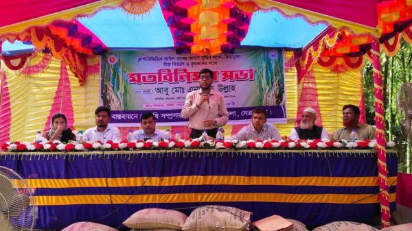 পূর্বধলায় ক্লাস্টার ভিত্তিক আউশ ধান আবাদ বৃদ্ধির লক্ষ্যে বিনামূল্যে নতুন জাতের আমন ধানের বীজ বিতরণ