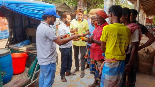 প্রচন্ড দাবদহে খেটে খাওয়া শ্রমজীবী মানুষের মাঝে কোমল পানীয় বিতরণ