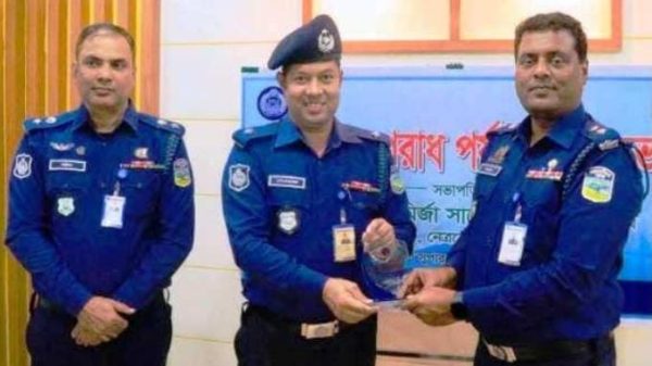 নেত্রকোনায় মাসিক অপরাধ পর্যালোচনা সভায় শ্রেষ্ঠ ওসি কাজী শাহনেওয়াজ